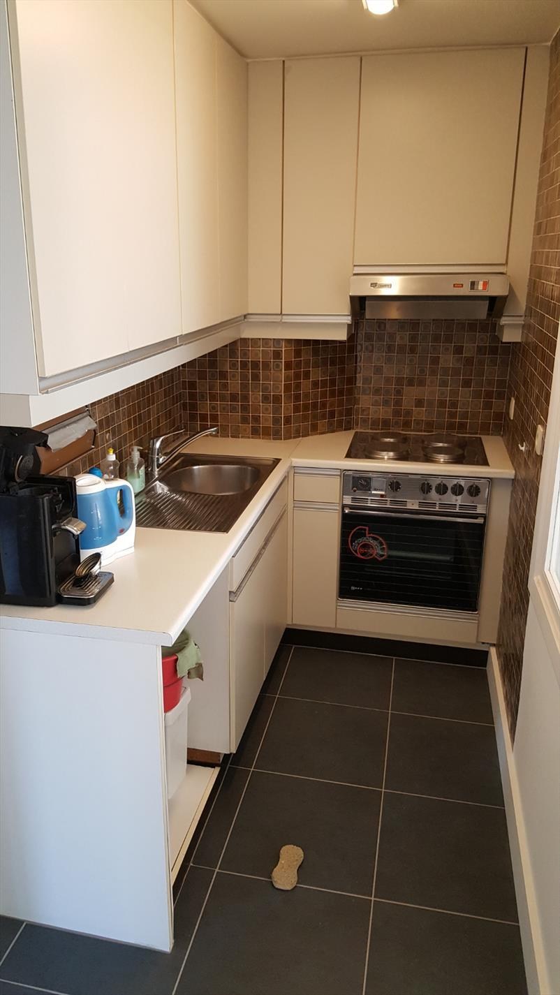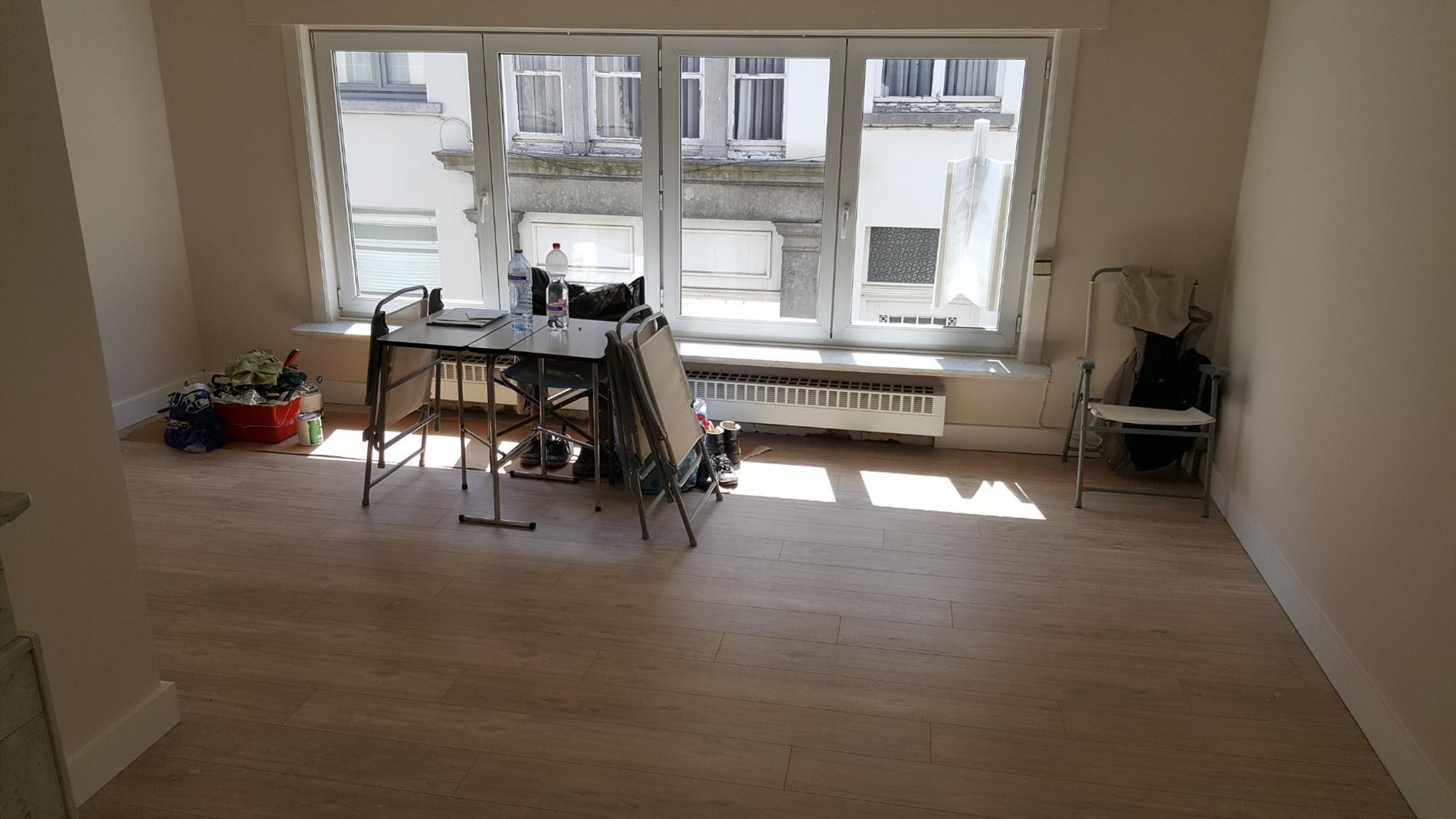 Dit gunstig gelegen appartement beschikt over de volgende indeling: living, ingerichte keuken, berging/vestiaire, badkamer met douche, lavabo en toilet, 1 slaapkamer/dressing en terrasje. Gemeenschappelijke berging op het gelijkvoers waar een wasmachine kan worden geplaatst. Ideaal voor alleenstaande of koppel. Huurprijs: 725 euro per maand. Vrij.