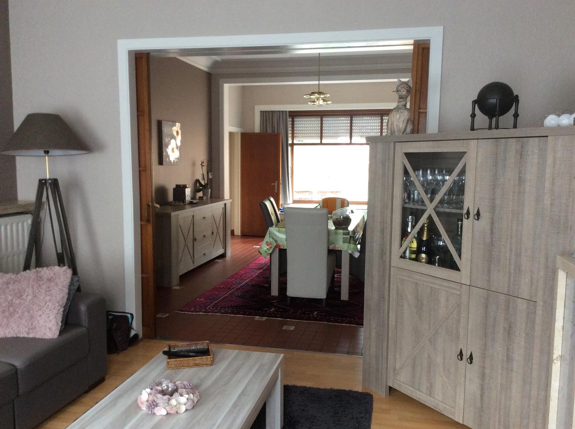 Centraal gelegen burgerwoning bestaande uit inkomhal, ruime living, aparte ingerichte keuken, apart toilet, berging/wasplaats, gerenoveerde badkamer met inloopdouche, dubbele lavabo en hangtoilet, 2 ruime slaapkamers op 1ste verdiep. 2 slaapkamers op 2de verdiep. Ruime kelder. Inpandige garage, gezellige tuin en tuinberging. Nabij Grote Markt, scholen, Carrefour ea..