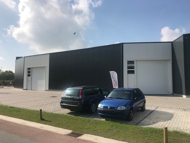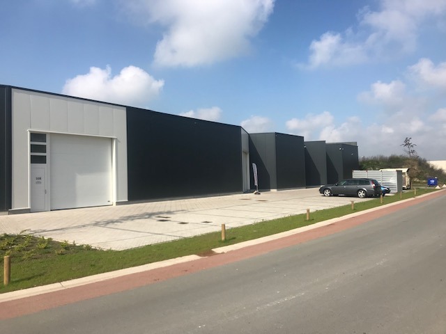 Nieuw gebouwde bedrijfsunit van 158 m² met grote inrijpoort en apart deur. Sanitaire voorziening, mogelijkheid tot kitchenette. 2 buitenparkings inbegrepen. Opslag, kantoor, beperkte productie....
