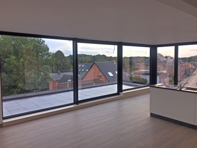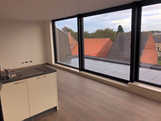 Nieuwbouw dakstudio op 3de verdieping met open slaapkamer, terras en staanplaats.