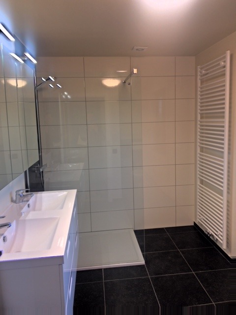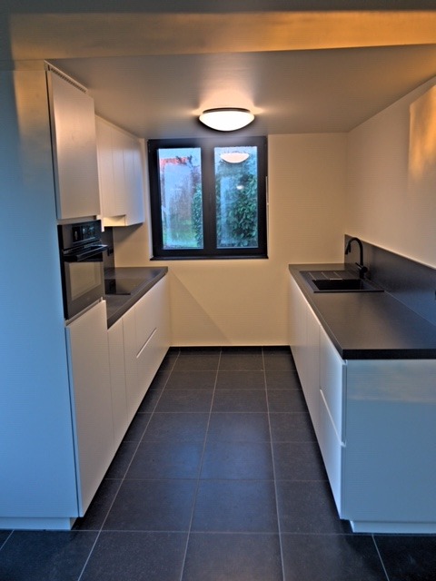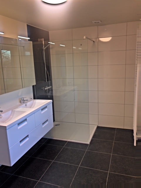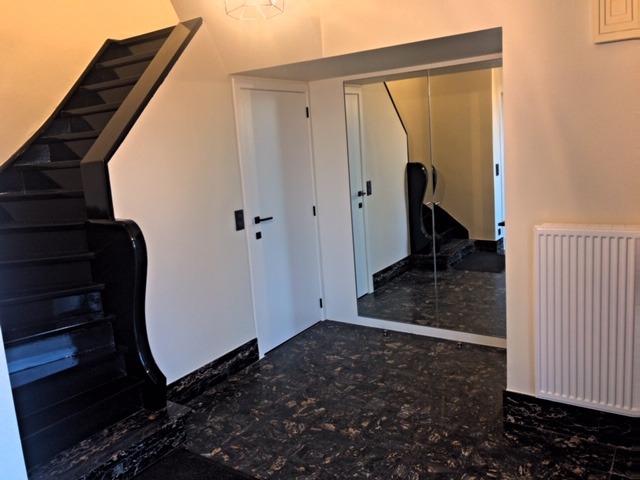 Ruime inkomhal met ingebouwde vestiaire, apart toilet met lavabo, living met gashaard en open ingerichte keuken ( DOVY ), berging-wasplaats. Kelder. 3 ruime slaapkamers. Badkamer met inloopdouche, dubbel lavabo-meubel, toilet. Aparte garage. Ruime tuin. Volledig gerenoveerd. Reeds geschilderd! Topper!