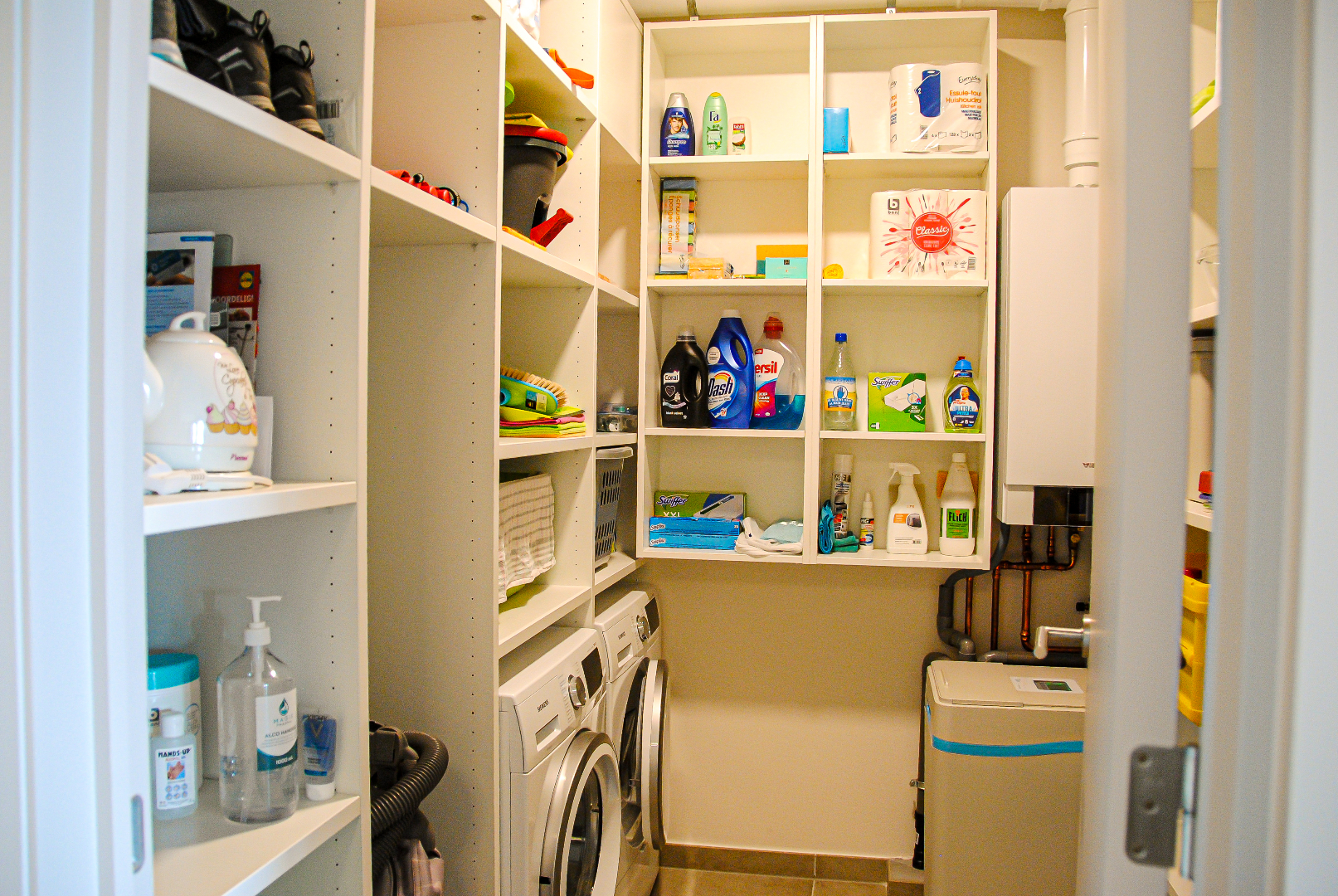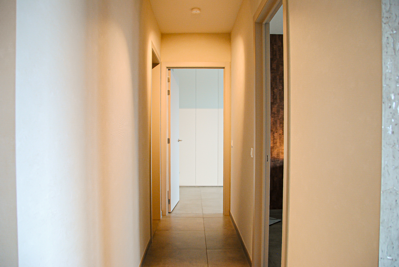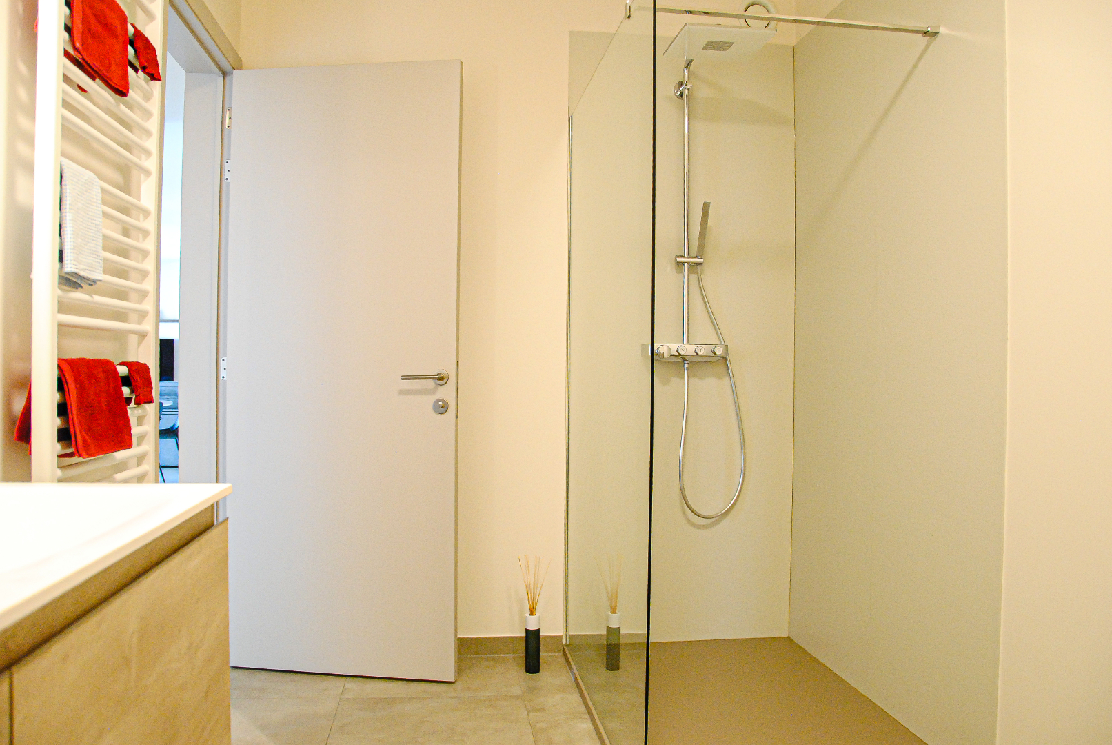 2 slaapkamers met maatkasten DM-line. Badkamer met regendouche, dubbel lavabo-meubel en toilet.