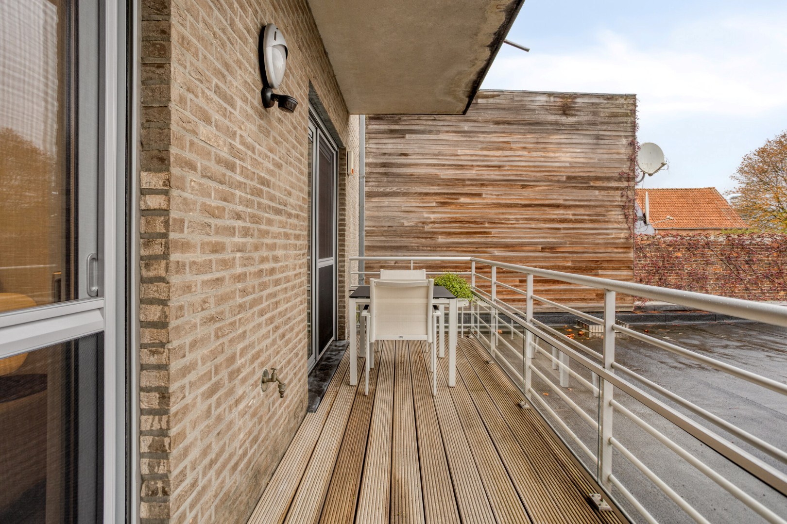 Ruim terras achteraan. Dubbele garage met sectionaal poort, bereikbaar via privatieve toegang met poort (afstandsbediening) en privatieve kelder. Lift. Gemeenschappelijke fietsenberging. Afspraak via olivier@immo-en-cie.be of ... 0475/970.780