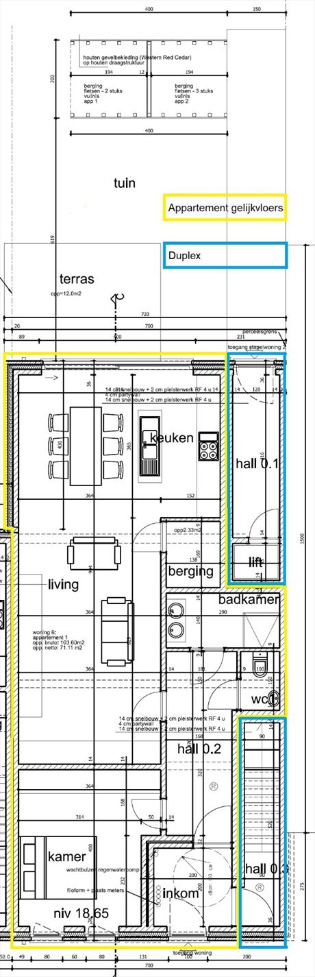 Dit betreft een gelijkvloers app van 105 m² bruto met tuin van circa 40 m².
