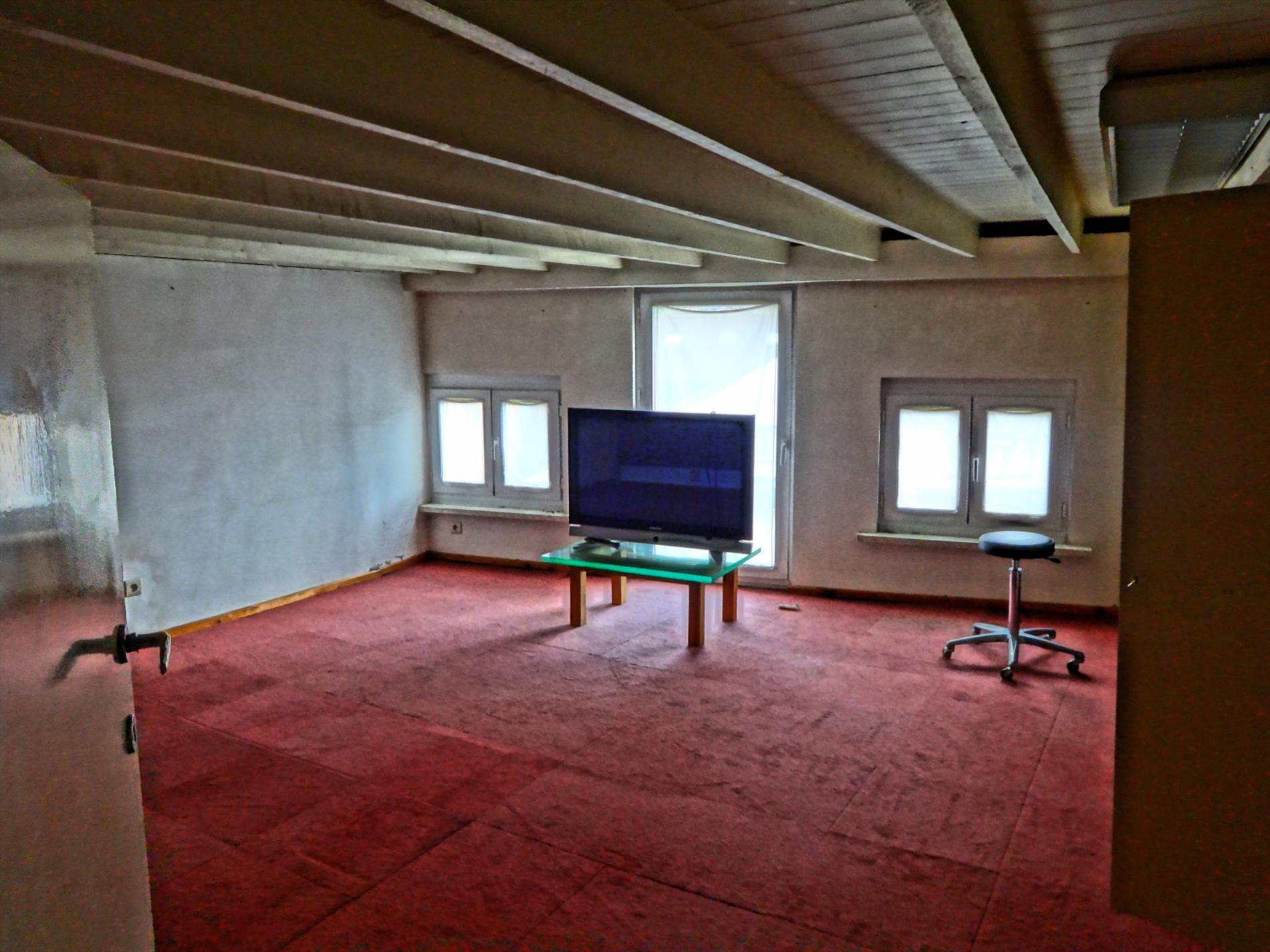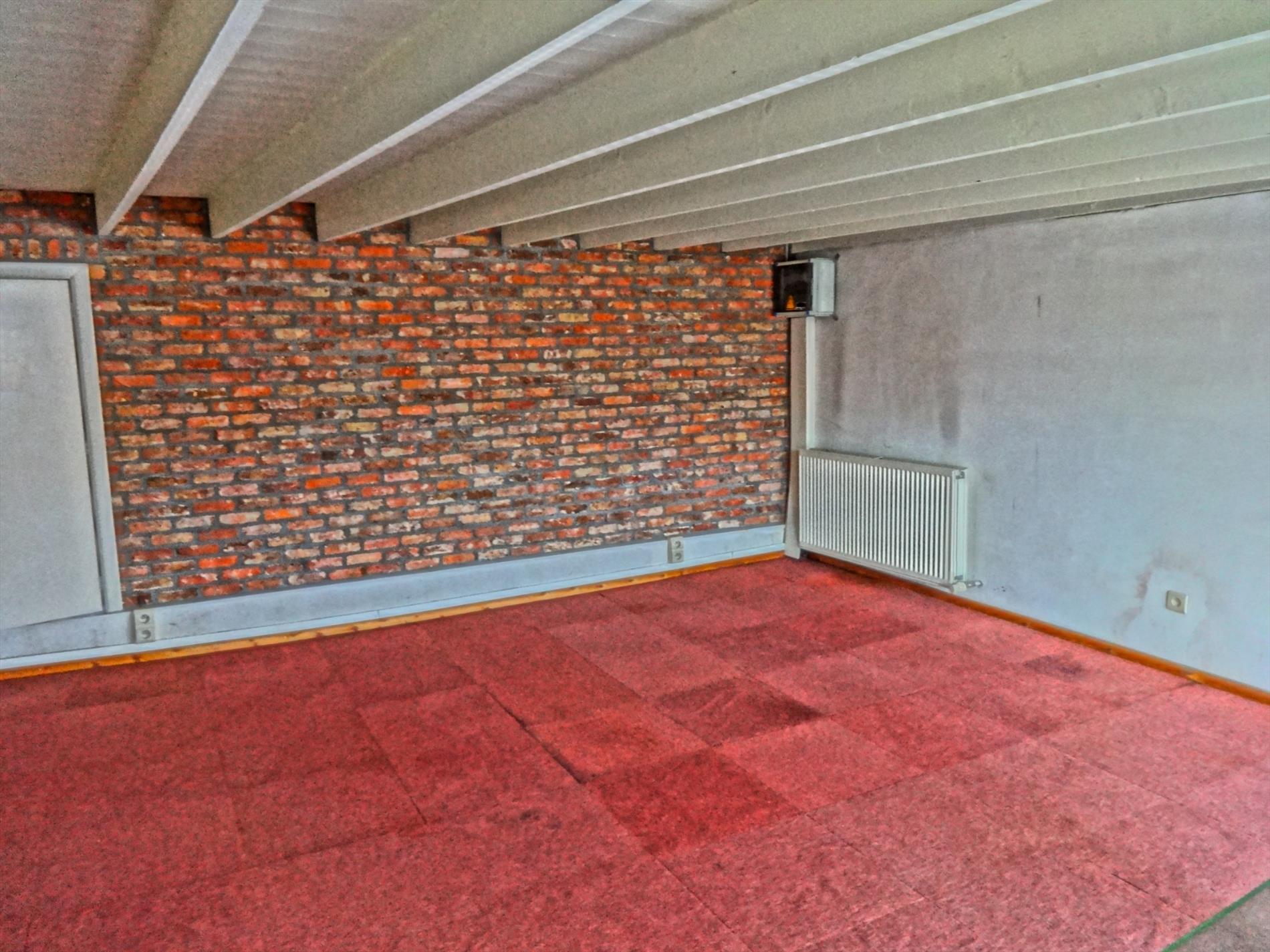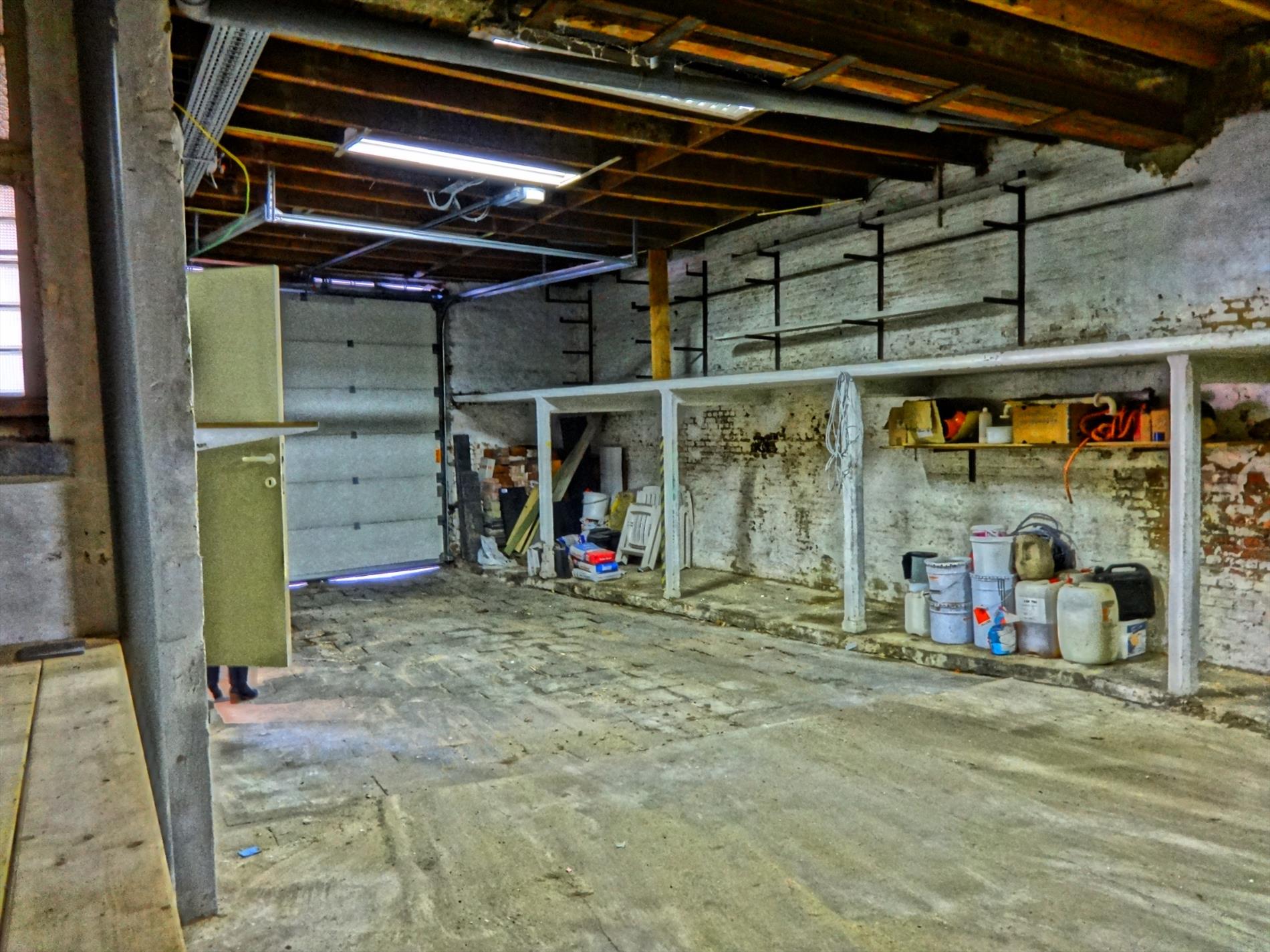 Inkomruimte- burelen-sanitaire voorziening-dubbele garage met automatische poort en grote opslagruimte. Kan perfect omgevormd worden tot privé-woonst.