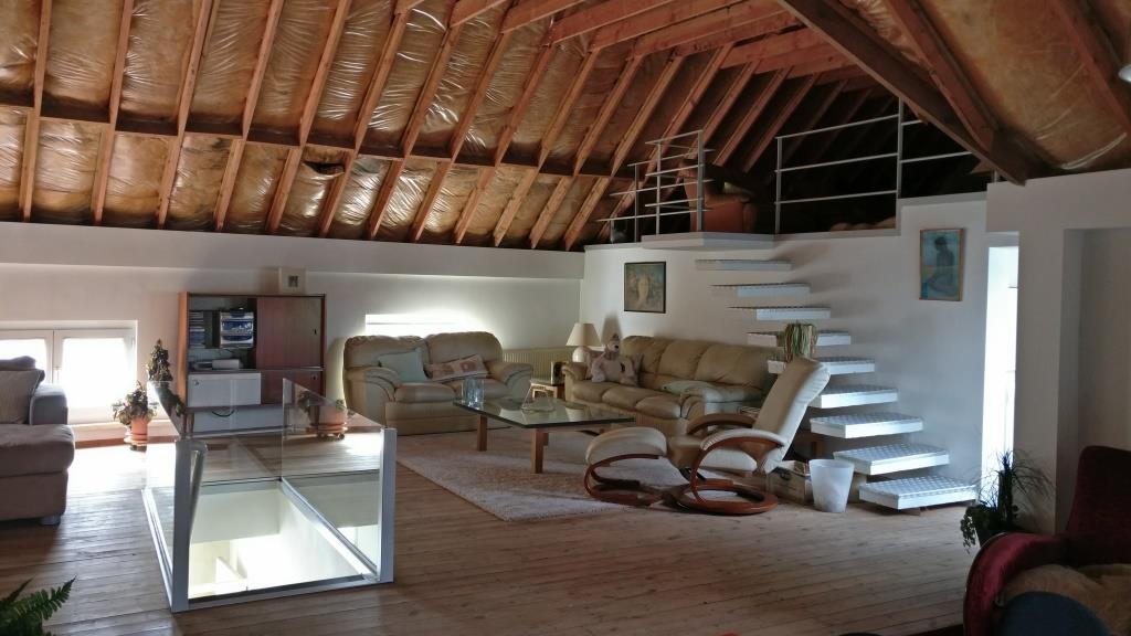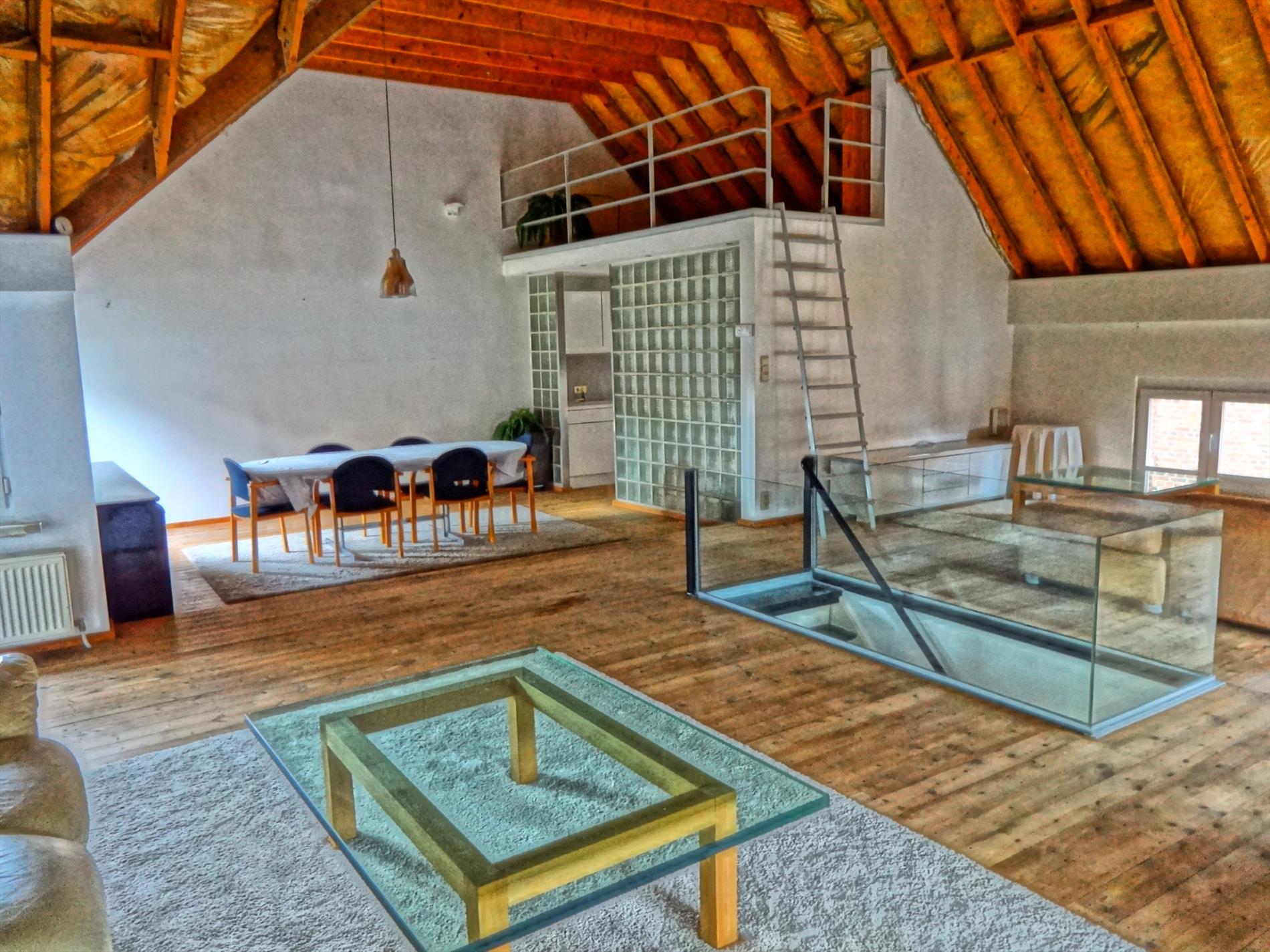1ste verdiep : ruime living ( loft-stijl ), ingerichte keuken, badkamer met ligbad en lavabo, 2/3 slaapkamers-ruimtes. Terras.