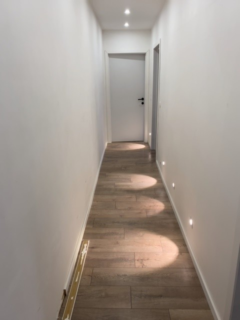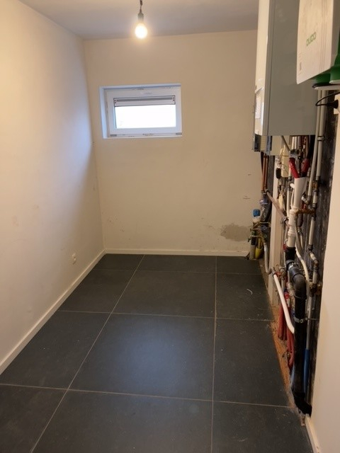 Inkomhal, ruime living met open ingerichte keuken, berging-wasplaats. Apart toilet met lavabo-meubel.