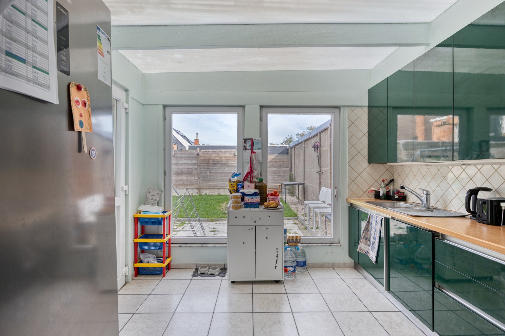Aparte keuken achteraan ( moet vernieuwd worden ). Kelder. Ruime berging/wasplaats. Apart toilet buiten. Garage en privatieve staanplaats.