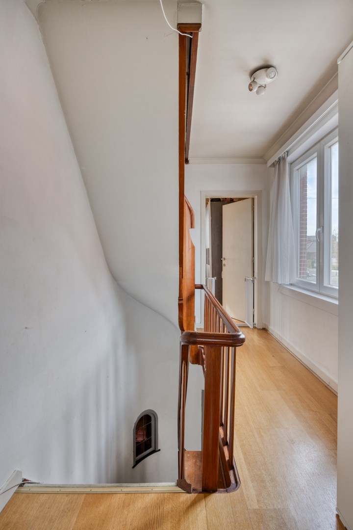 1ste verdiep: 2 ruime slaapkamers en 2de badkamer met toilet, lavabo en douche.