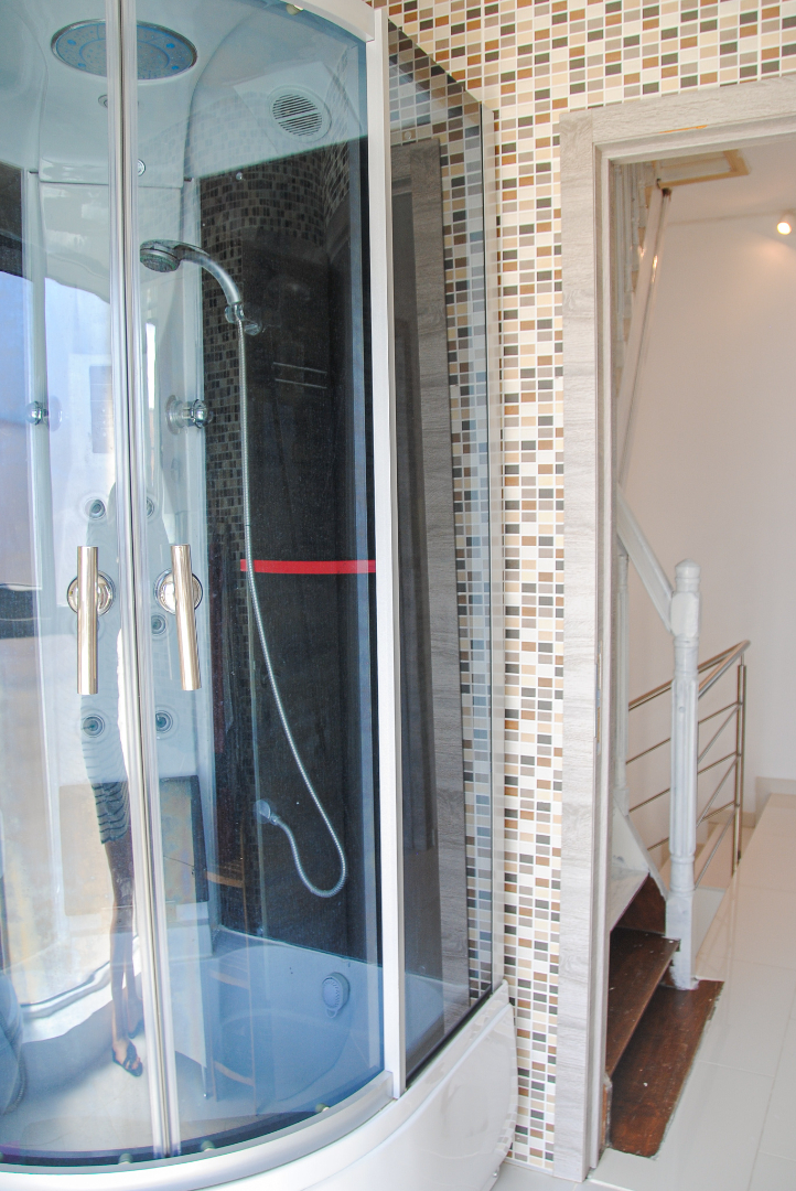 1ste verdieping : 3 ruime slpks. 2de badkamer met lavabomeubel, stoomcabine, hangtoilet.