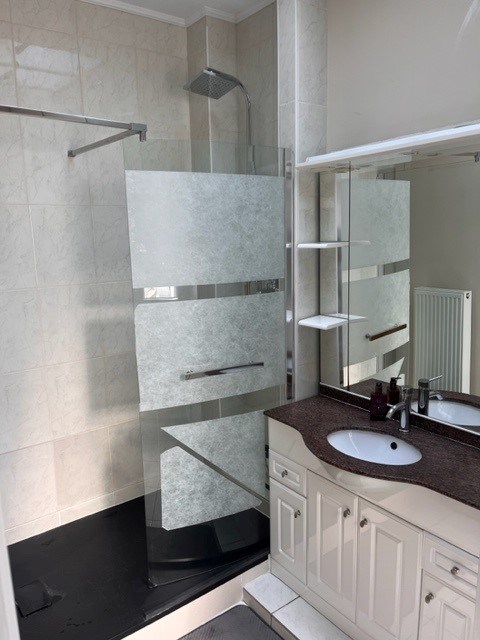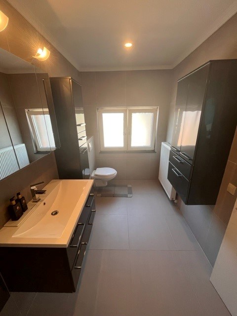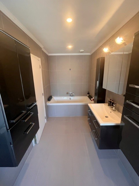 1ste verdiep: 3 slaapkamers en 2de badkamer met ligbad, lavabomeubel en toilet.