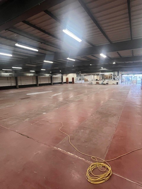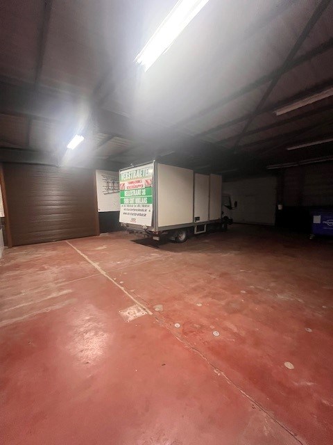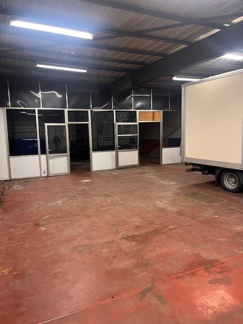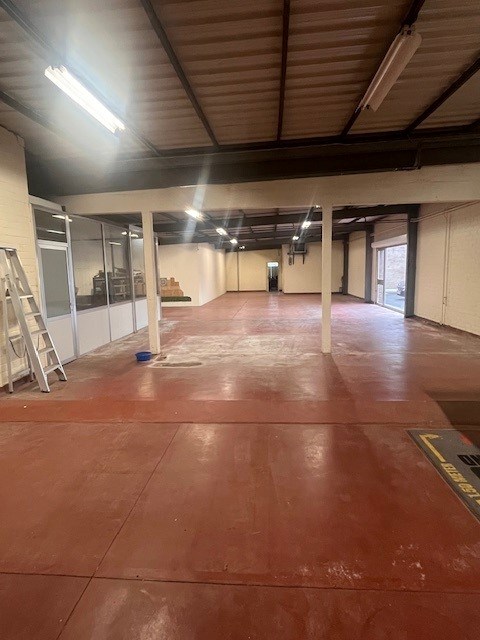 Circa 1460 m² bruto-opp magazijn/werkplaats/winkelruimte, opsplitsbaar. Sectionaal poort achteraan, aparte zij-oprit naar werkplaats achteraan. Nog berging van circa 80 m² bruto opp.