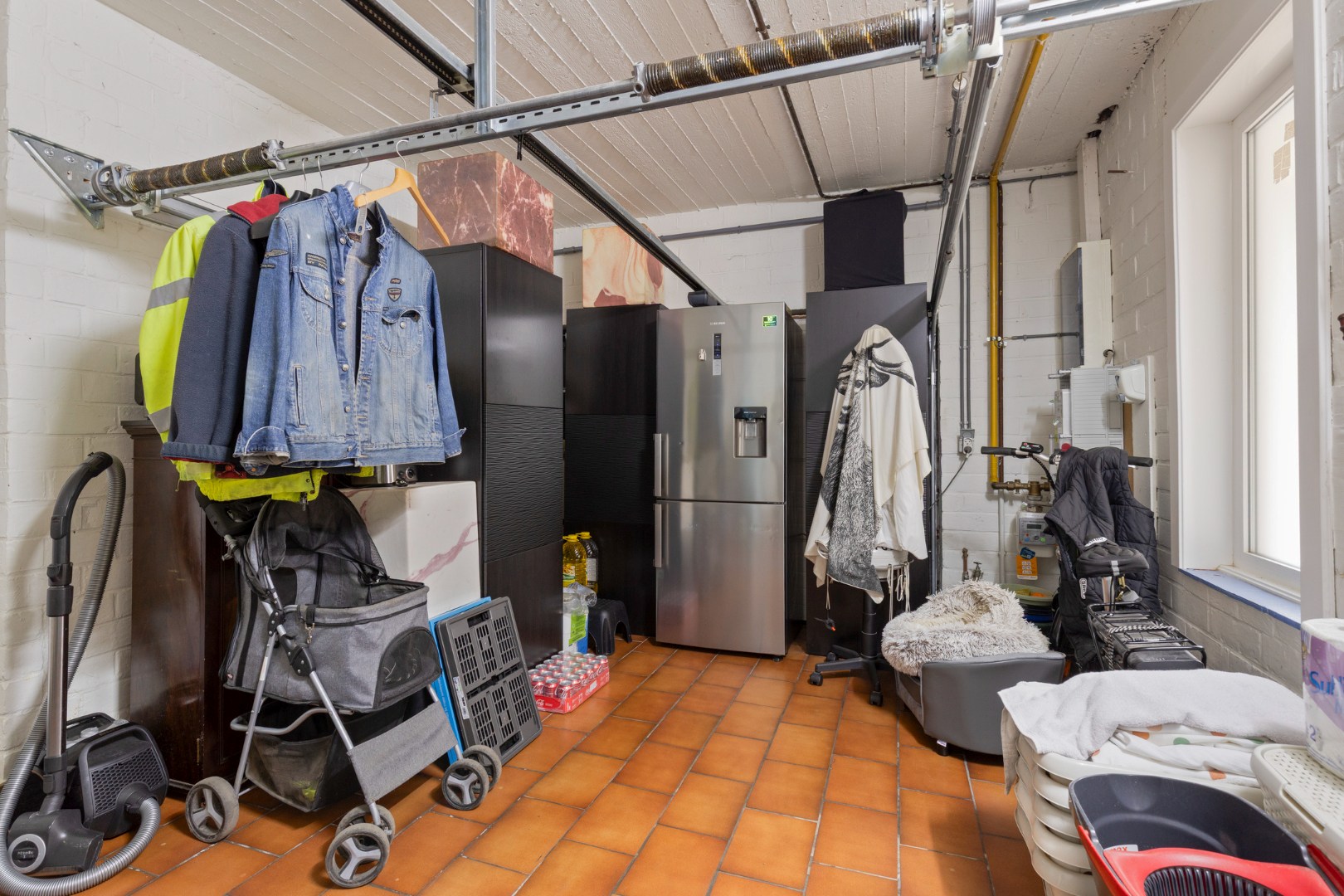 Inpandige garage met sectionaal poort. Op de 1ste verdieping hebben we ruime nachthal en 2 slaapkamers achter elkaar. Dubbel glas, rolluiken, CV op gas, conforme elektrische keuring. Momenteel is de woning verhuurd.